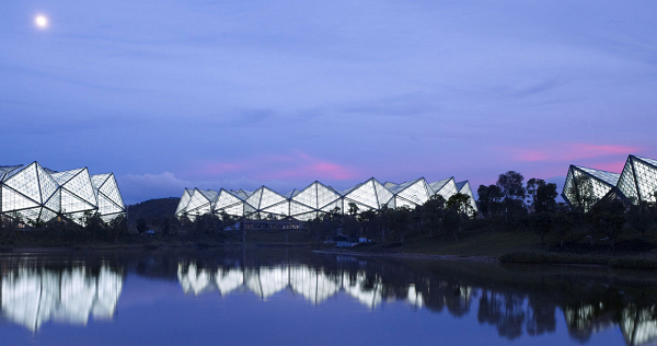 深圳大運(yùn)中心體育場館率先在國內(nèi)體育場館建設(shè)中引入以聚碳酸酯板(PC板)作為屋面材料面板,PC板是一種科技循環(huán)利用的高新低碳環(huán)保材料,相同厚度只有普通玻璃重量的50%,隔熱性能比普通玻璃提高了25%,沖擊強(qiáng)度時(shí)普通玻璃的250倍,并具有良好的透光性、抗沖擊性及耐紫外線輻射性能,同時(shí)還具有良好的尺寸穩(wěn)定性和成型加工系能。