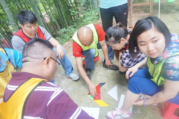 集合、報數、整隊、分組,一行人被分為6組開始不同主題的拓展活動,學員們分別進行了“國王與天使”、“目標市場”、“七巧板”、“團隊動力圈”、“挑戰99”、“合力致勝”和“畢業墻”等拓展科目。