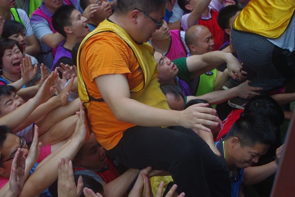 “團隊動力圈”和“畢業墻”科目帶給我們更多的是震撼、擔當和感動。“一個都不能少”這是學員在分享中提到的,團隊離不開個人,個人更需要團隊強大的力量支持。“讓我來撐起你”這是一種責任和承諾,“謝謝你們讓我當墩子”這是互相的信任和支持,“我的后背都交給你,來吧”、“你去休息換我來”、“注意安全”、“保護保護”……感動我們的是一句句承諾和信任,是一雙雙保持45度向上姿勢的手掌,是一個個泛紅的眼圈,我們奉獻于團隊,我為我的團隊感到驕傲和自豪。