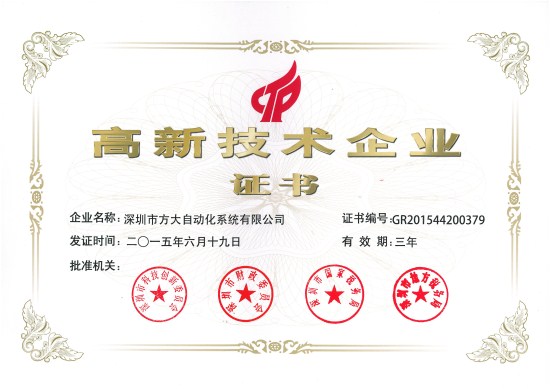 近期,根據科技部、財政部、國家稅務總局《高新技術企業認定管理辦法》和《高新技術企業認定管理工作指引》的規定,經企業申報、地方初審、專家審查、公示等嚴格的申報程序,方大集團股份有限公司全資子公司深圳市方大建科集團有限公司、深圳市方大自動化系統有限公司被認定為國家高新技術企業,成為深圳市2015年第一批國家高新技術企業。