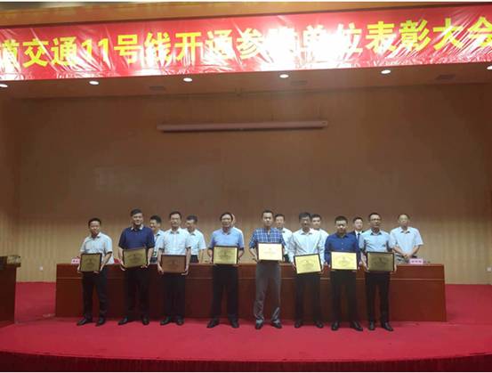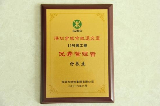 8月10日,深圳市地鐵集團舉行深圳軌道交通11號線開通參建單位表彰大會,深圳市方大自動化系統有限公司榮獲“深圳市城市軌道交通11號線工程突出貢獻獎”稱號,自動化公司項目經理付長生榮獲“深圳市城市軌道交通11號線工程優秀管理者”稱號。