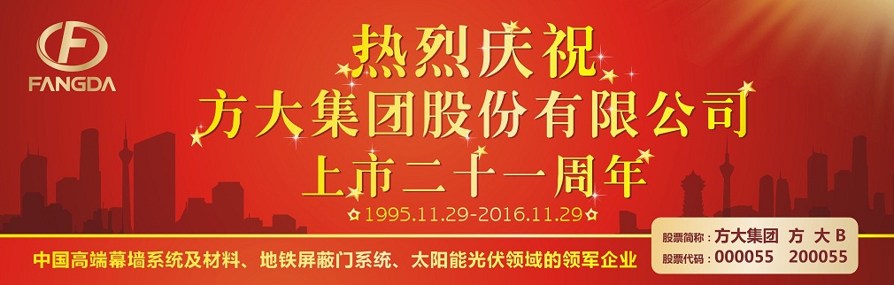 開拓進取,塑造了方大集團勇于創(chuàng)新的獨特氣質(zhì);光榮與夢想,賦予了方大集團繼往開來、再創(chuàng)輝煌的崇高責任。在經(jīng)濟新常態(tài)背景下,方大集團將繼續(xù)傳承“科技為本,創(chuàng)新為源”的經(jīng)營理念,深耕高端幕墻系統(tǒng)及材料、軌道交通屏蔽門系統(tǒng)、太陽能光伏以及房地產(chǎn)等產(chǎn)業(yè)領(lǐng)域,努力為市場提供更多優(yōu)質(zhì)產(chǎn)品,為社會創(chuàng)造更多財富,為投資者帶來更加豐厚的紅利。