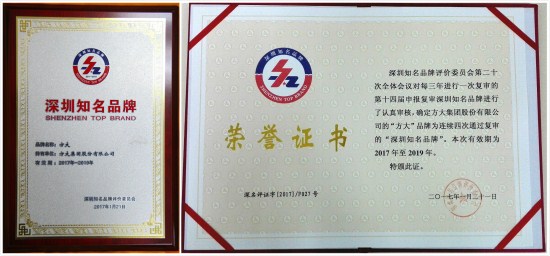 “深圳知名品牌”是由深圳工業總會按照深圳市政府相關文件要求,與25個政府機構、69個行業協會、3個研究機構、11個專業機構和兩大傳媒集團組成的深圳知名品牌評價委員會聯合評選,權威性強。“深圳知名品牌”現已成為代表深圳乃至全國先進產品和服務質量、高品牌價值與知名度、較強市場競爭力等的金字招牌。