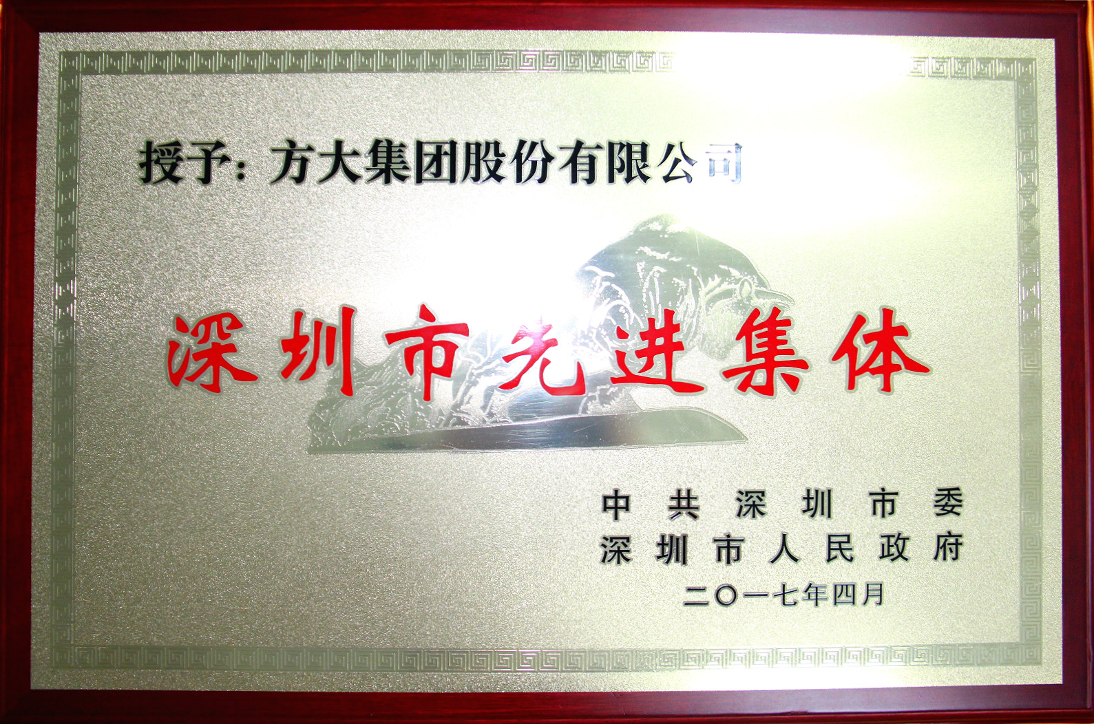 4月28日,方大集團股份有限公司榮獲“深圳市先進集體”榮譽稱號。