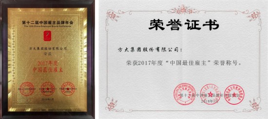 方大集團榮獲2017年度“中國最佳雇主企業”榮譽稱號