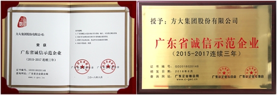 方大集團連續三年榮獲“廣東省誠信示范企業”稱號