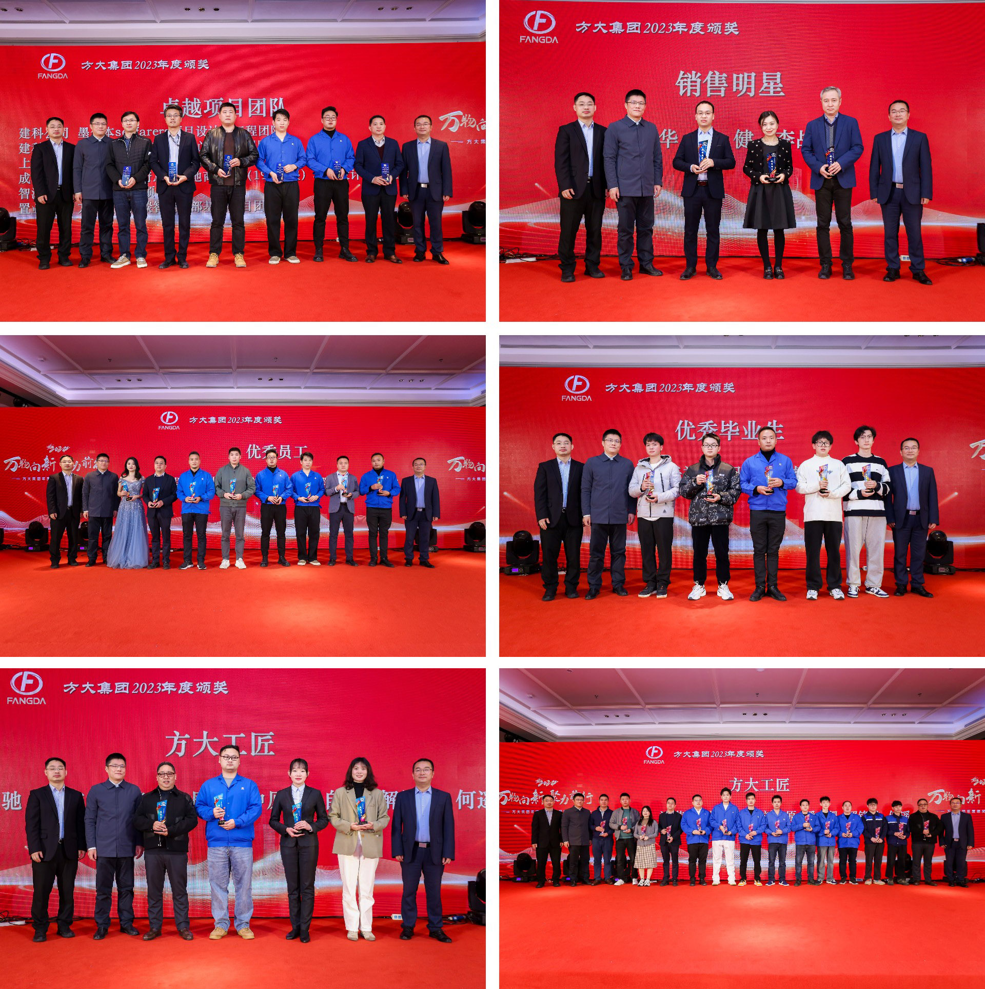 頒獎(jiǎng)盛典向先進(jìn)加冕,向榜樣致敬。副總裁魏越興宣讀2023年度表彰文件,公布2023年度獲獎(jiǎng)人員及團(tuán)隊(duì)獲獎(jiǎng)名單。總裁熊希為突出貢獻(xiàn)獎(jiǎng)企業(yè)頒獎(jiǎng),副總裁林克檳、董格林為優(yōu)秀畢業(yè)生、優(yōu)秀員工、方大工匠、銷售明星、卓越項(xiàng)目團(tuán)隊(duì)頒獎(jiǎng)。